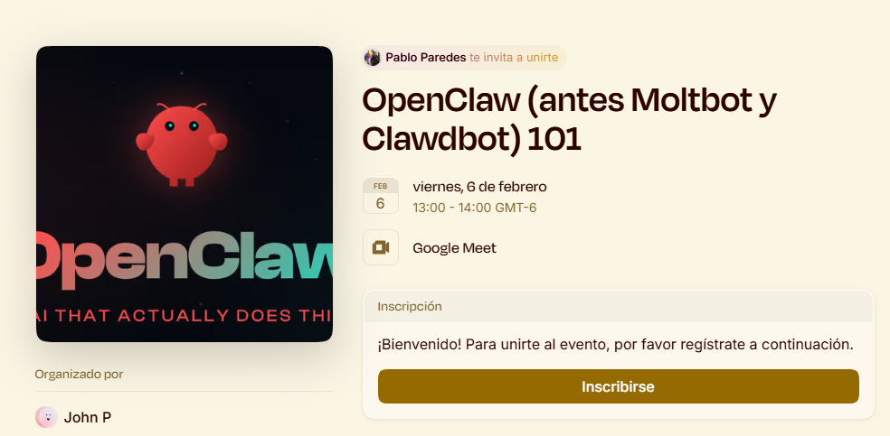 Mi buen amigo John Parker, CTO de MILA STORIES dará una clase gratuita sobre Clawdbot - ahora Moltbot - ahora OpenClaw, el asistente personal de IA del que todos hablan, pero casi nadie entiende.